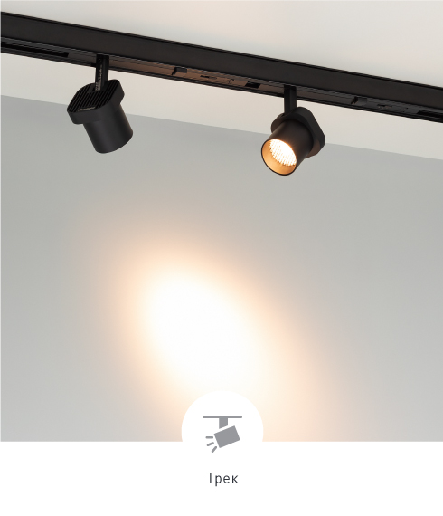 Светильник устанавливается в 3-фазный шинопровод при помощи адаптера, который располагается на одном уровне с треком.