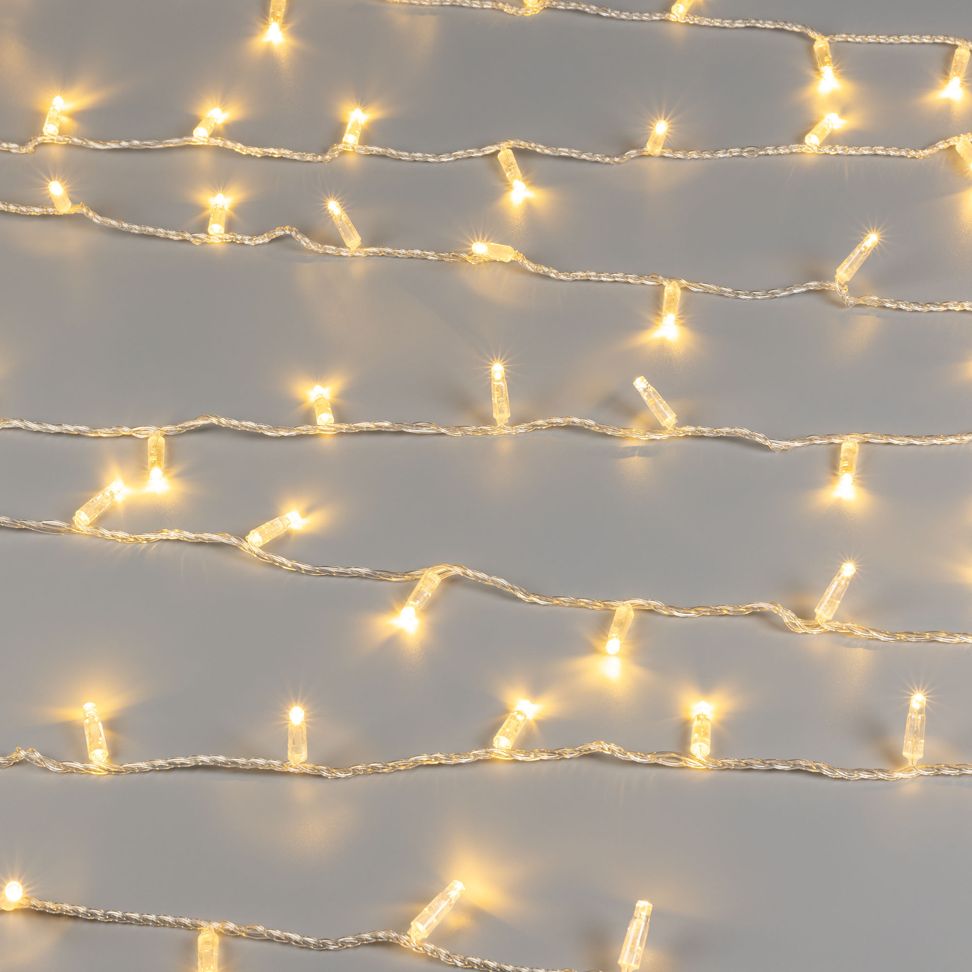 Светодиодная нить Classic. Размер 10000 мм. Цвет свечения ТЕПЛЫЙ БЕЛЫЙ (3000 К). 100 светодиодов размером 7 мм со статическим эффектом свечения с резким световым рисунком (прозрачная вогнутая линза). Провод прозрачный, ПВХ. Питание 230 В, Мощность 7 Вт, защита IP65, применение в помещении и на улице под навесом. Аксессуар для подключения приобретается отдельно.