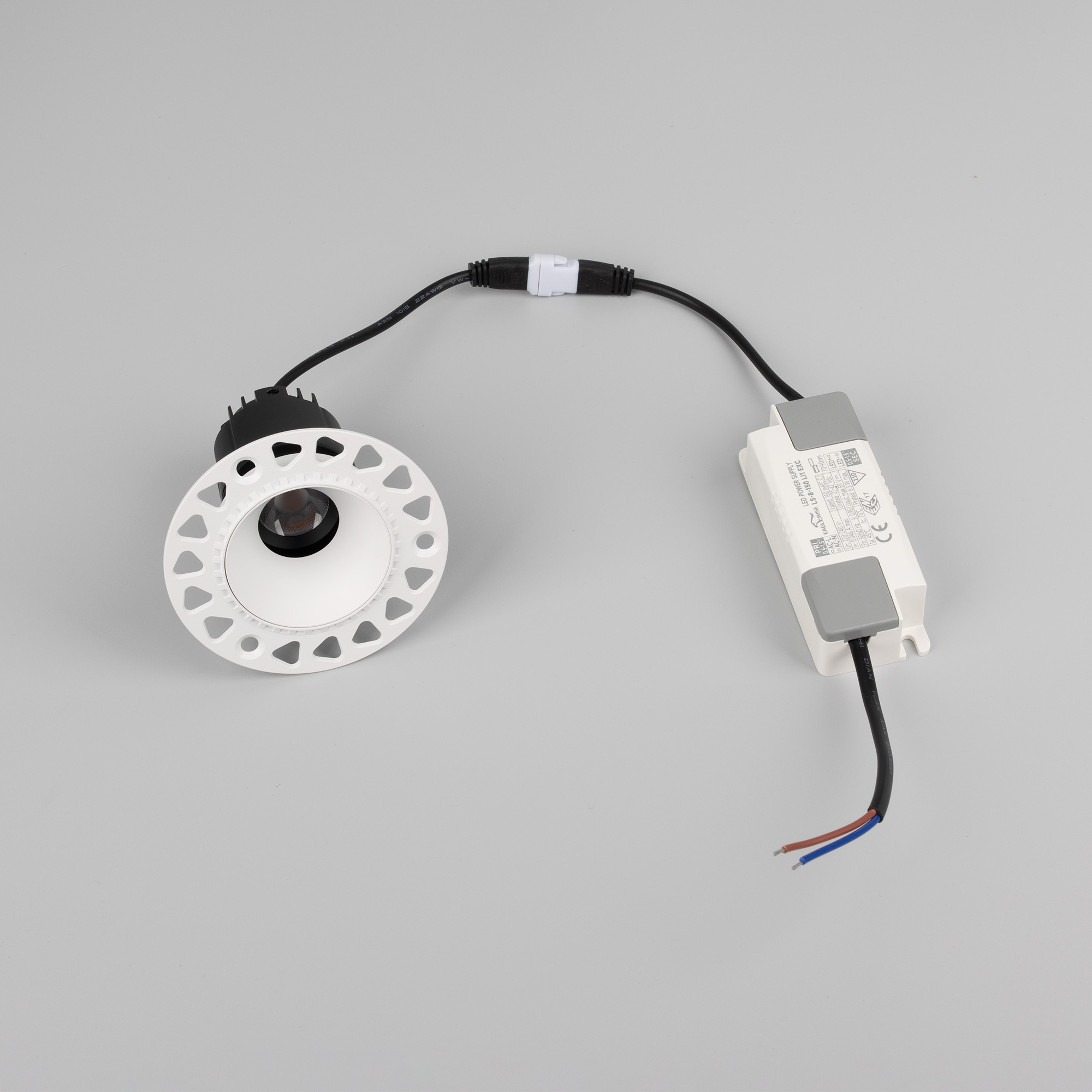 Встраиваемый светильник даунлайт. Мощность 7 Вт, св. поток 405 лм, 55 лм/Вт, теплый 3000 K, CRI>92, угол 55°, напряжение питания 230 В. Белый круглый корпус из алюминия, белый матовый отражатель, степень защиты IP20 . Размер: диаметр 85 мм, высота 72 мм. Монтаж встраиваемый, установочное отверстие: диаметр 55 мм. Драйвер, 27-42 В, 150 мА, пульсация <0,5%.