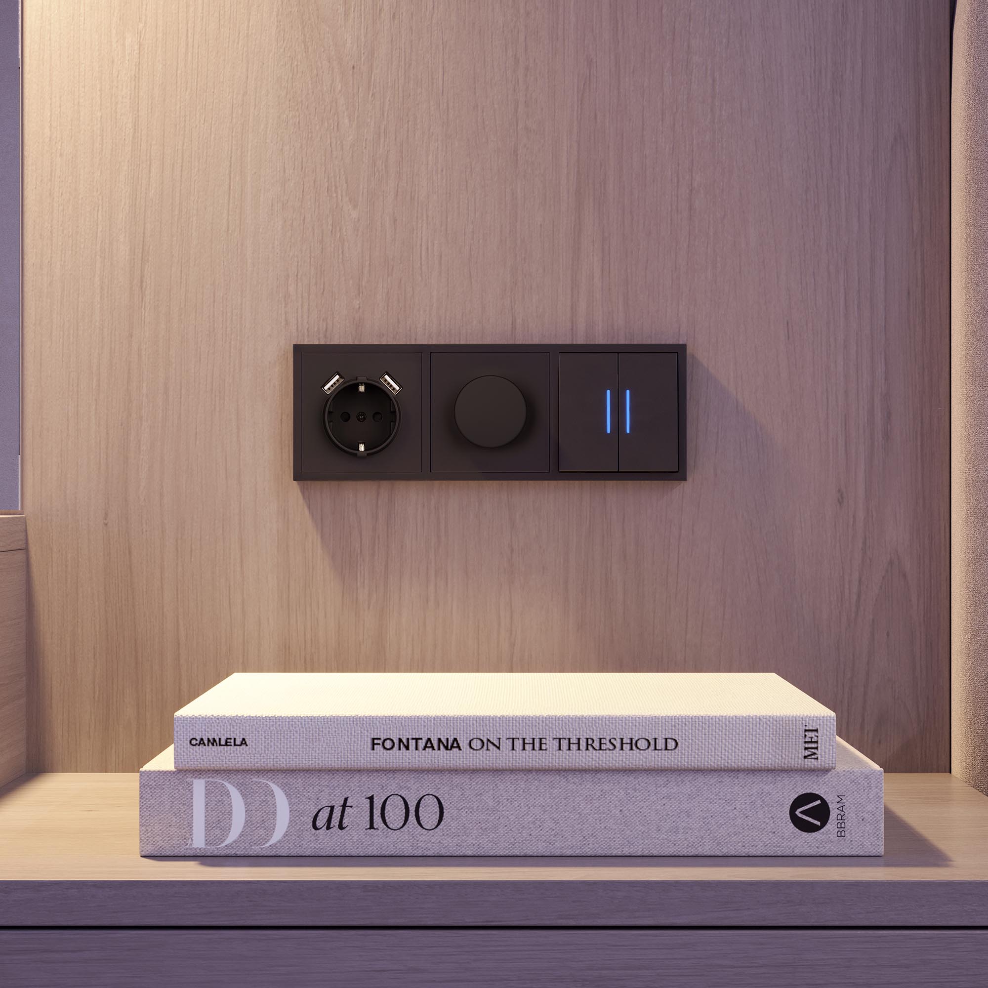 Строгие геометрические линии гармонично сочетаются с функциональностью продуманных механизмов, создавая идеальное решение для дизайн-проектов, где важны эстетика и практичность. Светорегулятор совместим с рамками серии NOBE, создавая утонченный минималистичный вид. Скрытый тип монтажа позволяет гармонично встроить в интерьер любого современного дизайн-проекта. Видимая часть механизма выполнена из высококачественного пластика цвета черный оникс и имеет Soft-Touch покрытие, что придает изделию приятные тактильные ощущения и стильный внешний вид. Настройка интенсивности освещения осуществляется за счет поворотной ручки (ротора). Она позволяет включать, выключать и регулировать свет и его яркость. Светорегулятор предназначен для управления светодиодными (до 150Вт) или другими источниками света (до 300Вт) с напряжением питания 230В. Суппорт окрашен в черный матовый цвет под основу механизма и выполнен из металла толщиной 1,5мм, что обеспечивает безопасность и уверенность в установке. На каждой стороне суппорта размещены фиксирующие элементы, позволяющие комбинировать механизмы в системы до 5шт как горизонтально, так и вертикально.