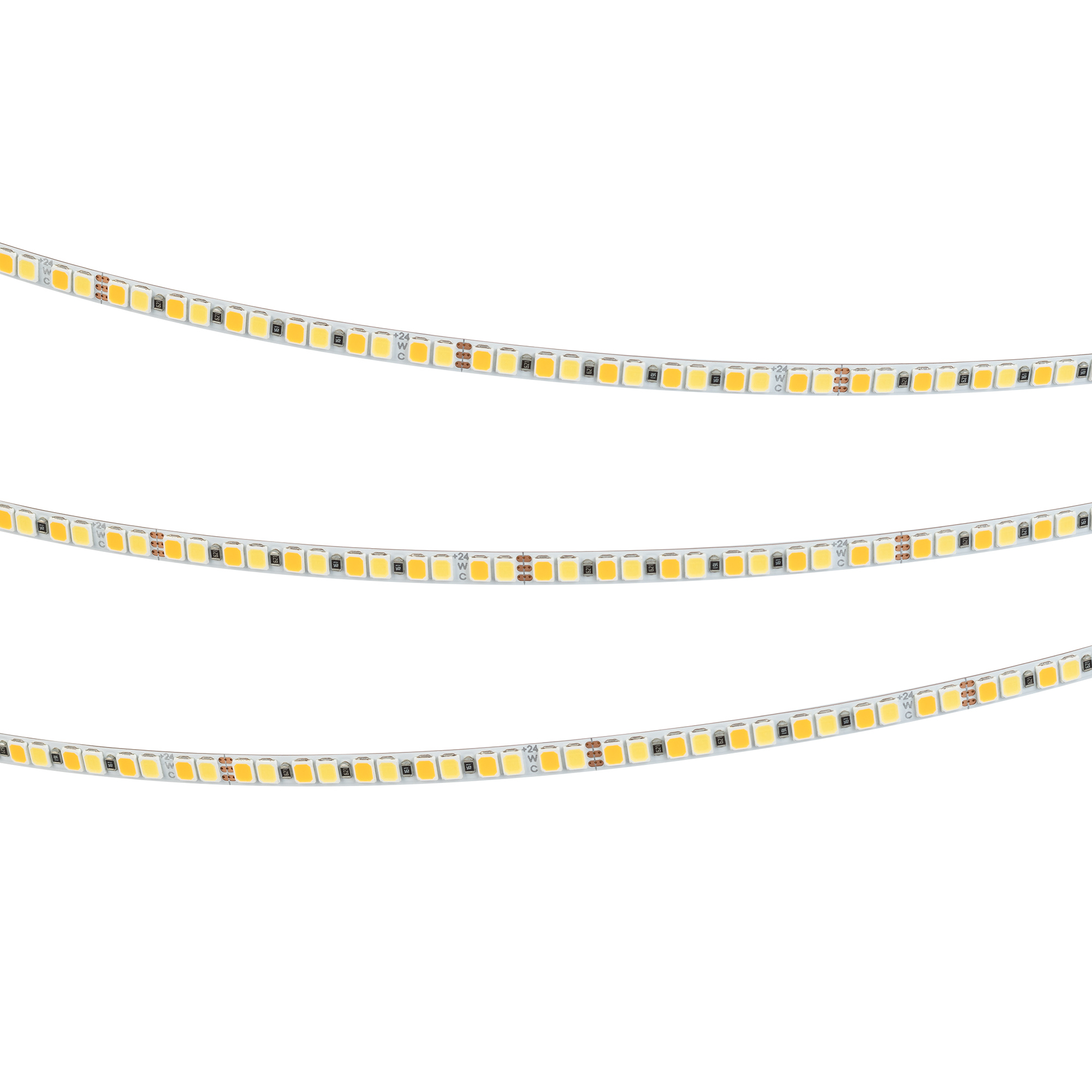 2-канальная узкая лента шириной 5 мм с изменяемым цветом свечения: белым (6000 K) и теплым белым (2700 K). Светодиоды SMD 2835 (240 шт/м) с высоким индексом цветопередачи (CRI>90). Мощность 10 Вт/м, напряжение питания 24 В. Минимальный отрезок 50 мм (12 светодиодов). Предназначена для освещения помещений и декоративной подсветки интерьеров: торцевой подсветки, подсветки стеклянных полок, элементов мебели, ниш, декора. Светодиоды двух оттенков белого цвета позволяют плавно менять цветовую температуру.