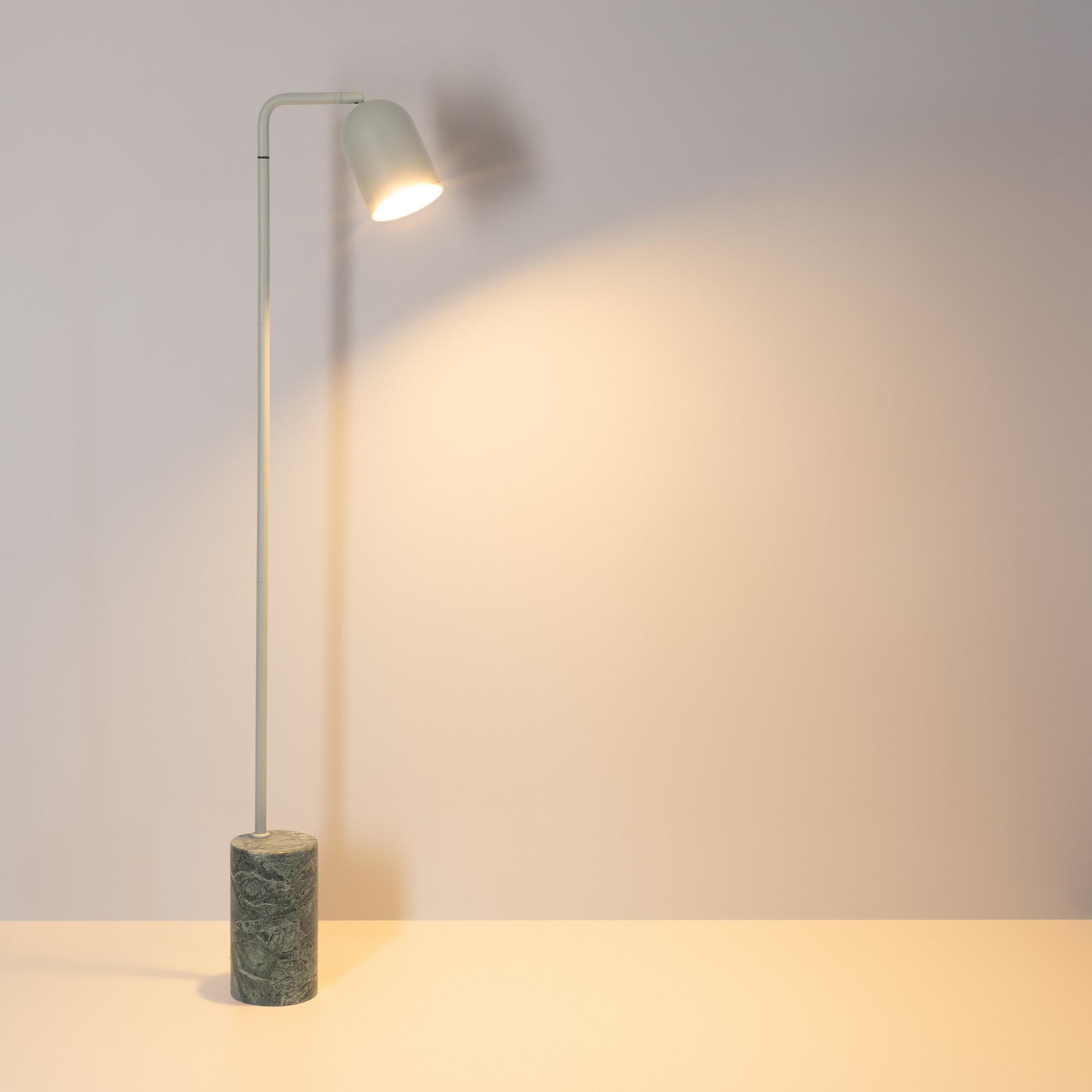 Напольный светильник MASON. Мощность 6 Вт, световой поток 530 лм, световая эффективность - 88 лм/Вт, с изменяемой цветовой температурой 2700/3200/4000K, CRI>90, угол 120°, напряжение питания 230 В. Корпус светло-синего цвета из алюминия, напольная база из натурального камня (зеленый мрамор). Сенсорная кнопка на плафоне для настройки яркости и цветовой температуры. Cтепень пылевлагозащиты: IP20. Размеры: диаметр плафона 120 мм, высота плафона 170 мм, диаметр напольной базы 140 мм, общая высота светильника 1430 мм. Цвет и текстура камня могут отличаться.