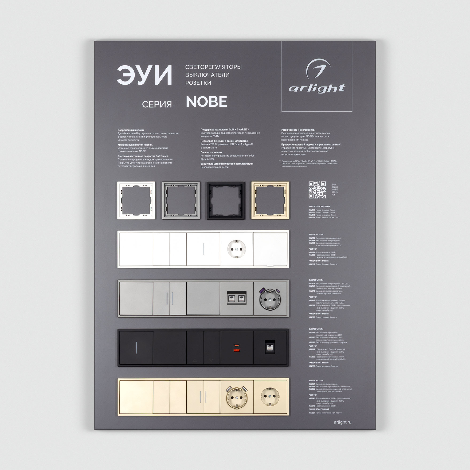На стенде представлены выключатели и розетки серии Nobe