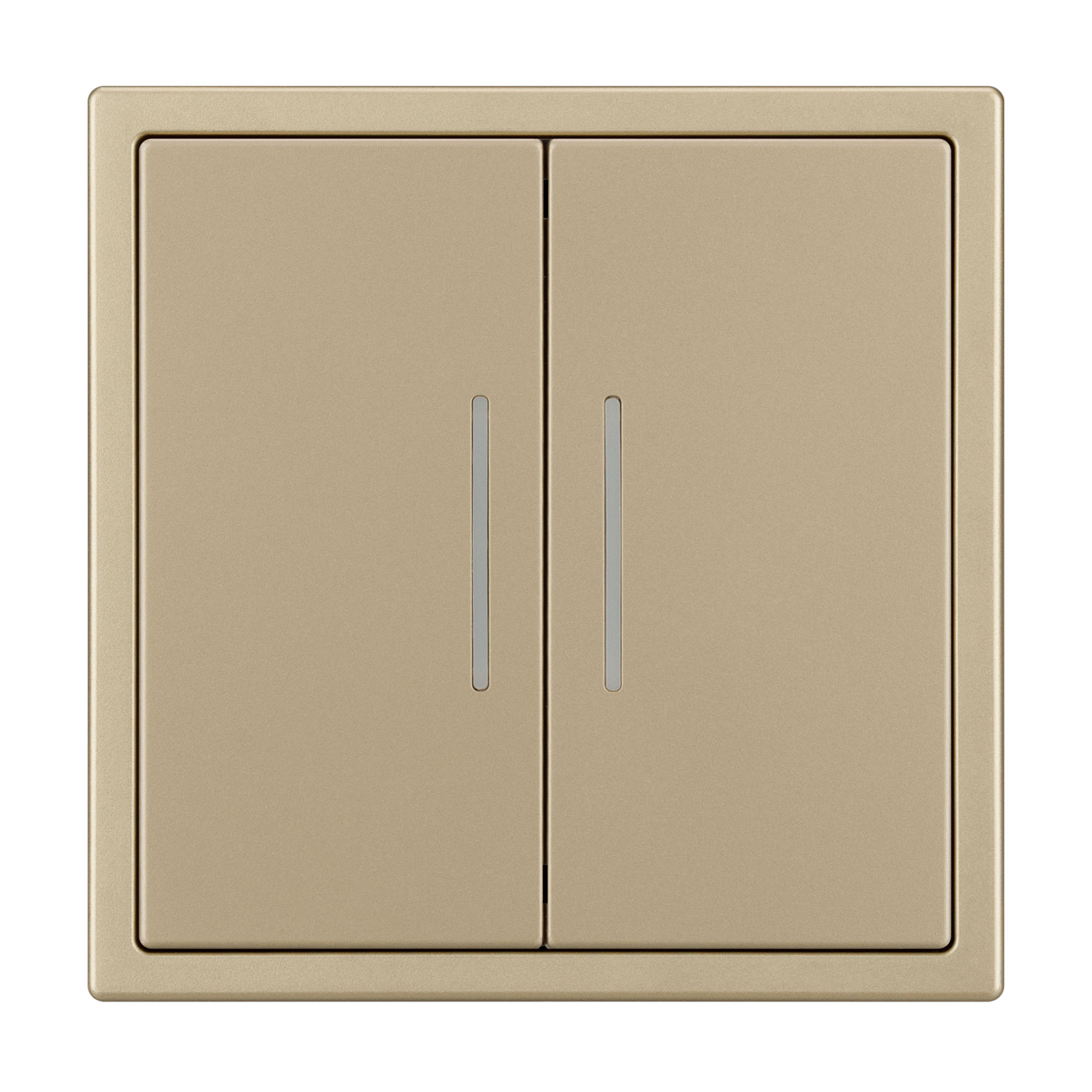 Механизм звонкового выключателя двухклавишный на 1 пост 2 самовозвратные клавиши. Цвет - золотой песок, с Soft-Touch покрытием. Клавиша имеют LED подсветку - cинего свечения. Без фронтальной рамки. Уровень пылевлагозащиты IP20. Выключатель устанавливается в стандартный круглый подрозетник круглого сечения диаметром 60мм. Габаритные размеры: длина 71 мм, ширина 71 мм, высота 52 мм. Гарантийный срок 10 лет.