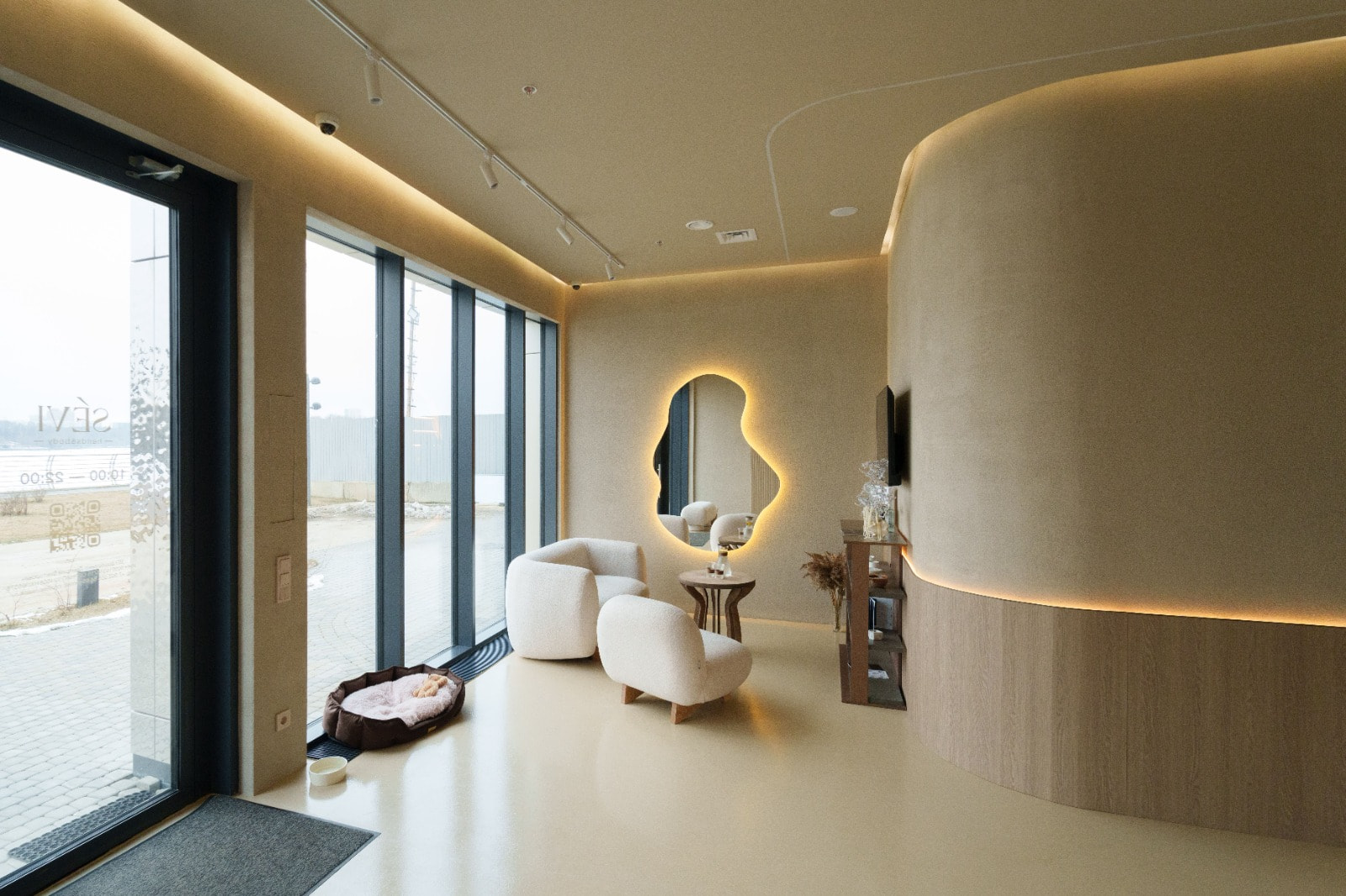 Освещение в салоне должно быть достаточно ярким для работы, но при этом мягким, чтобы не утомлять глаза. Добиться такого баланса позволяет сочетание: